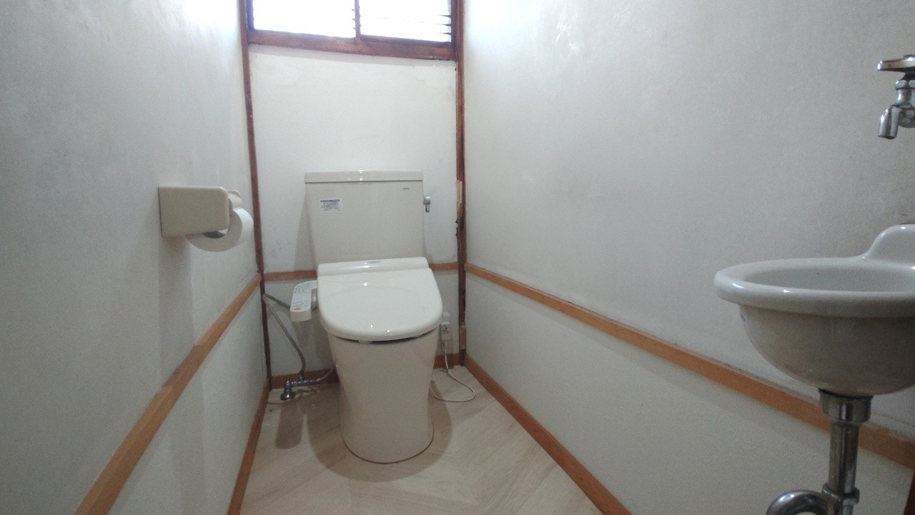 There is also a parking space for one car in front of the garage with a shutter. It comes with a bracket light, so it is very convenient to carry in and out luggage at night. There is also a bathroom on the first floor, so you can take a shower after a sweaty day at work.